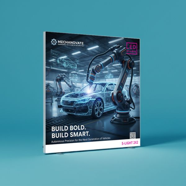 S-LIGHT est un cadre lumineux portable et innovant, équipé d’une boite légère de transport avec poignée et compartiments. Solution Plug and Play rapide à monter sans outils grâce aux bandeaux LED préassemblés sur le cadre et ses pieds pivotants.