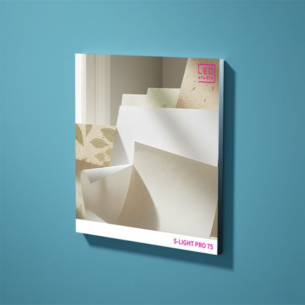 S-LIGHT PRO 75mm est un cadre lumineux mural, conçu pour s’intégrer élégamment et durablement dans tous les espaces intérieurs. Le montage du cadre avec bandeaux LED intéégrés s’effectue rapidement à l’aide des équerres de renforts pour les sections en angles, des connecteurs pour les sections droites (vis et chevilles murales non fournies).